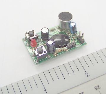pushbutton switches and electret microphone. One button is pressed to